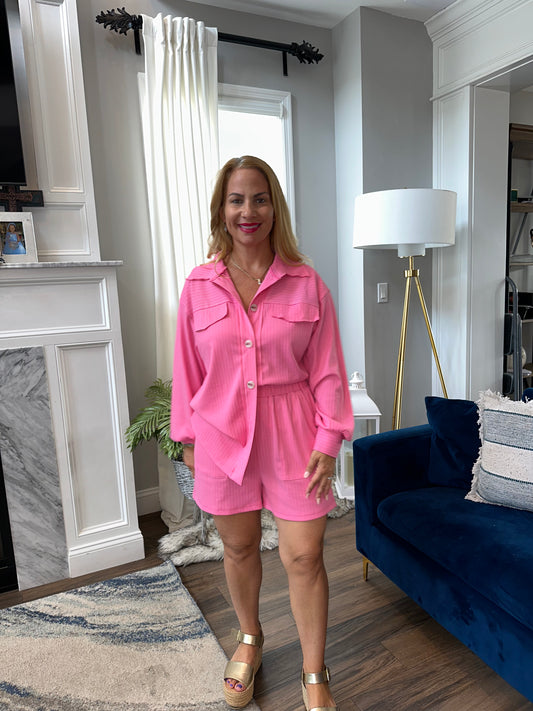 Two Piece Button Down Short Set