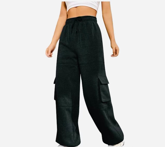 Carbon Grey Cargo Pockets Drawstring Sweatpants