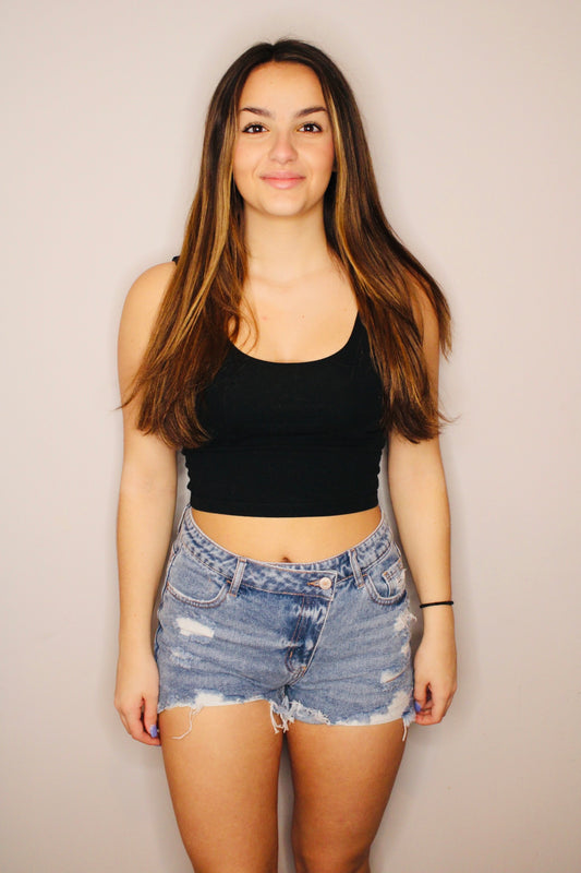 Davi & Dani Fold Over Waist Band Strap Detail Short