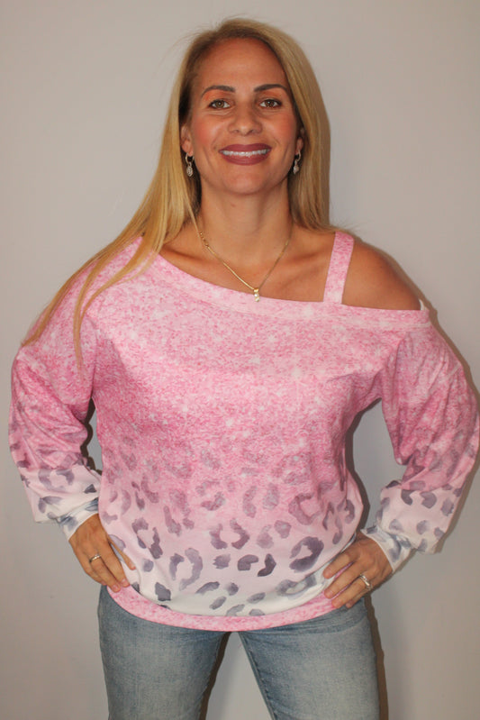 Leopard cold shoulder top