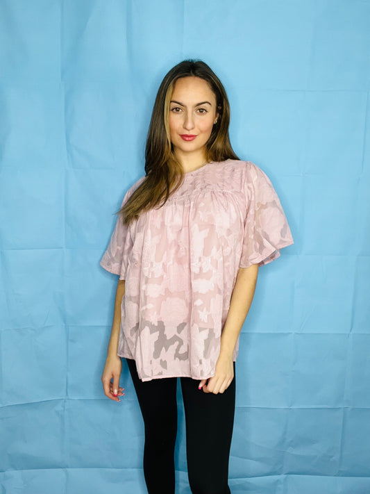 Pink Floral Three Piece Top, Bottom , Cover Up Set