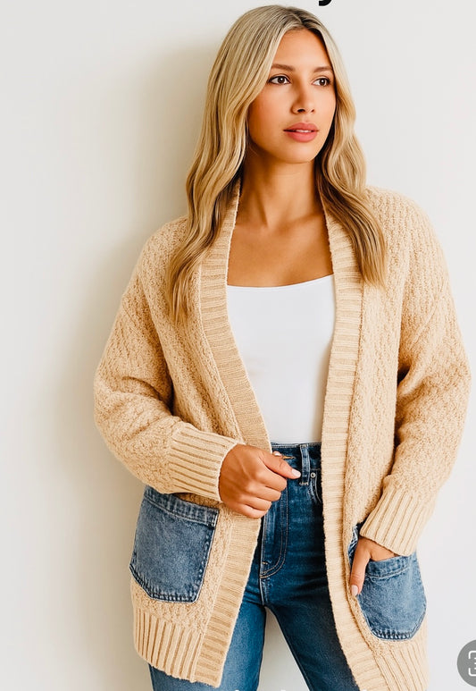 Sky Blue Oversized Checkered Denim Exposed Seam Patchwork Casual Sweatshirt