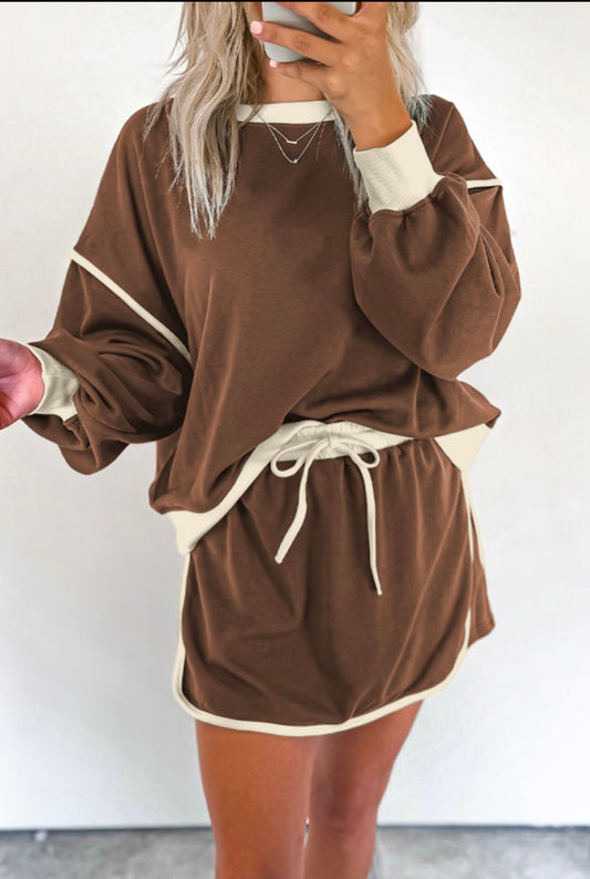 MABLE Plaid Button Down Sweater Cardigan and Mini Skirt Set