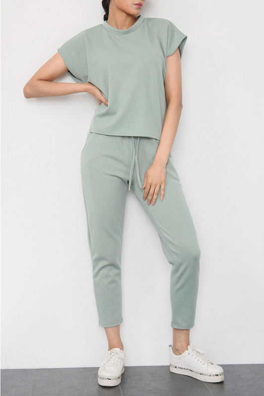 Sage Short Sleeve Boxy Top & Jogger Loungewear Set nge Set