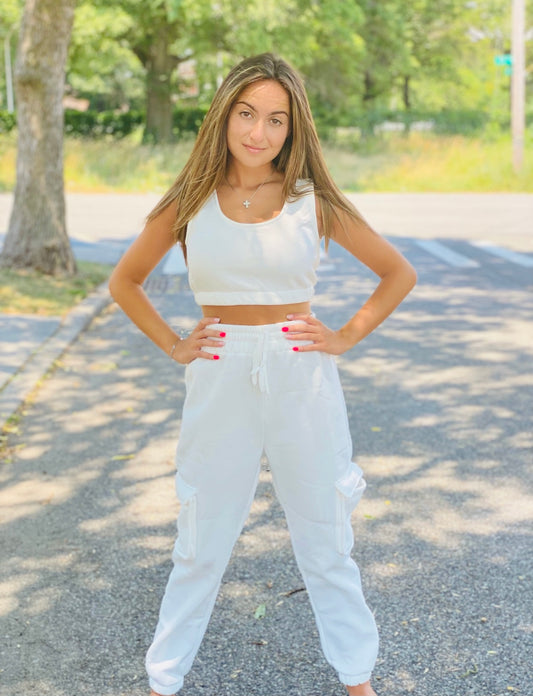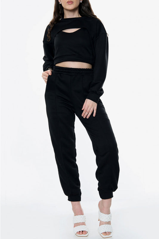 Cut Out Detail Top and Jogger 3 Piece Lounge Set