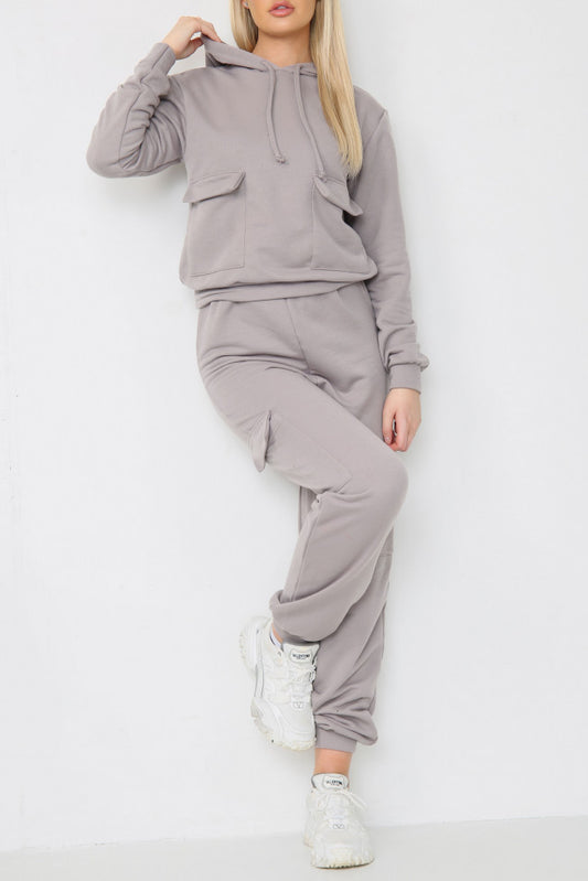 Grey Pocket Detail Hoodie and Jogger Lounge Set