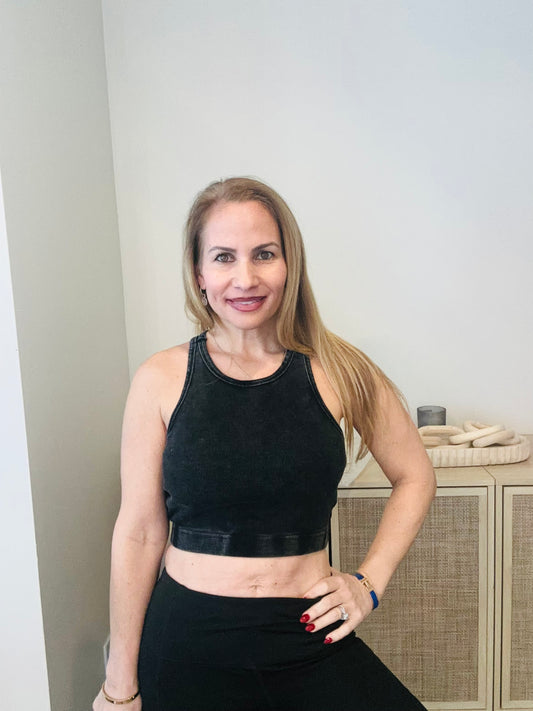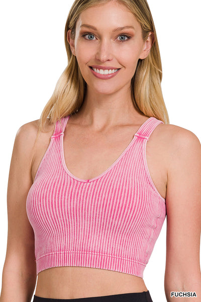WASHED RIBBED CROPPED BRA PADDED TANK TOP