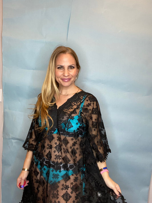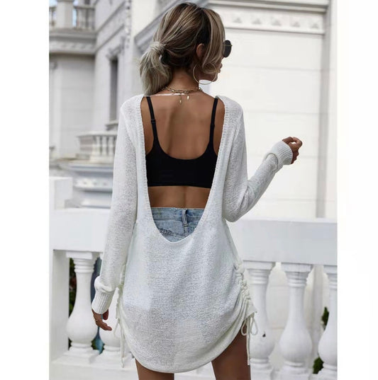 Crochet Cold Shoulder Three-Quarter Sleeve Cover Up