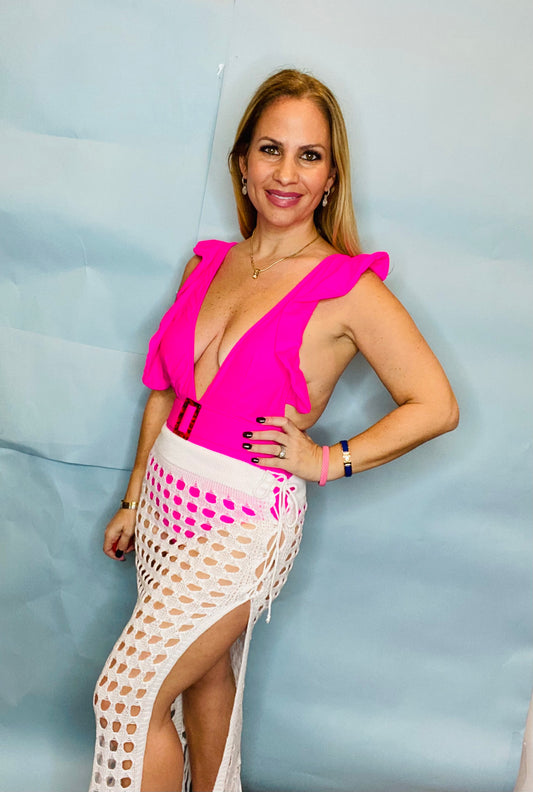 Pink Tiered Swim Culotte