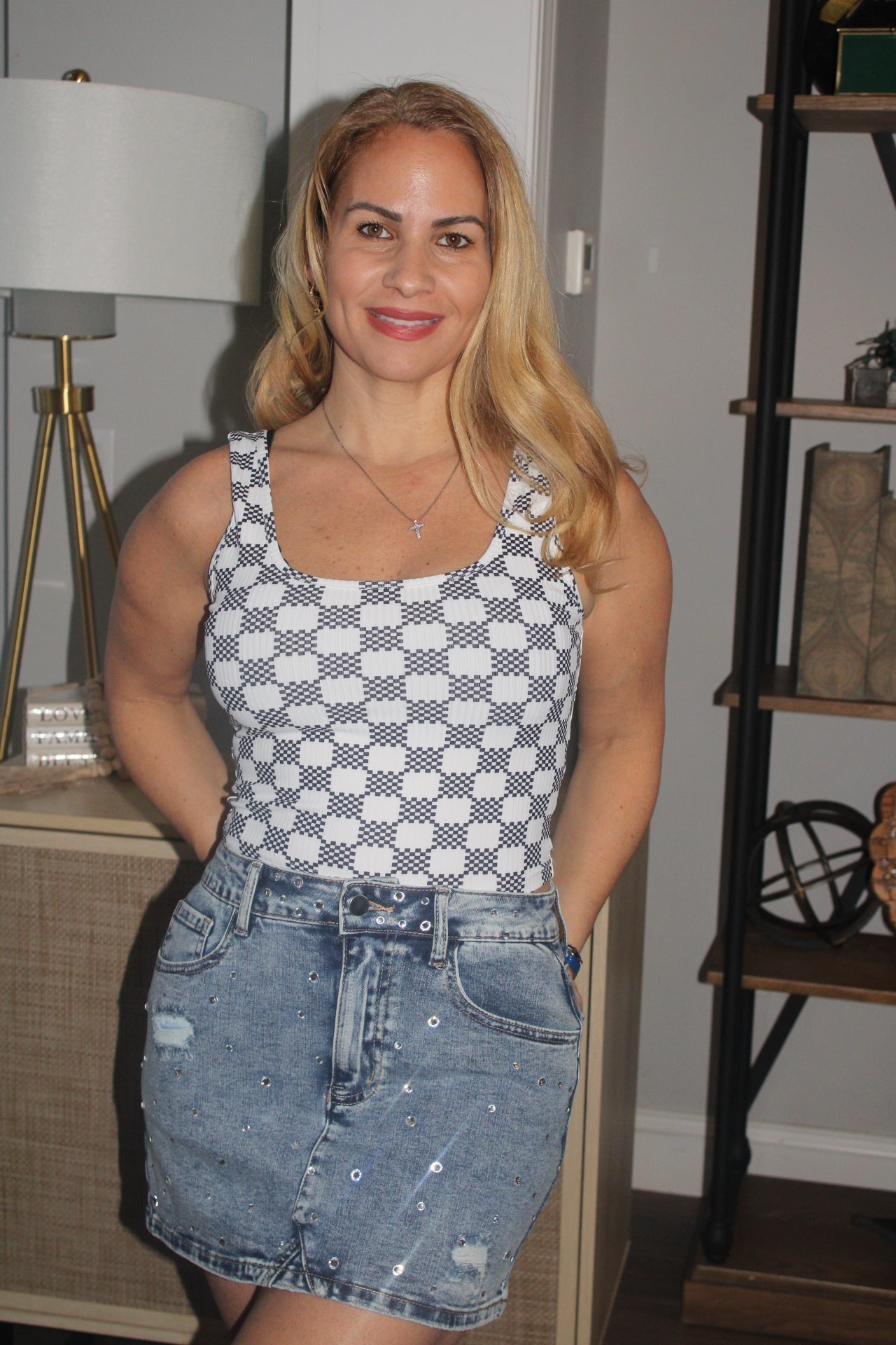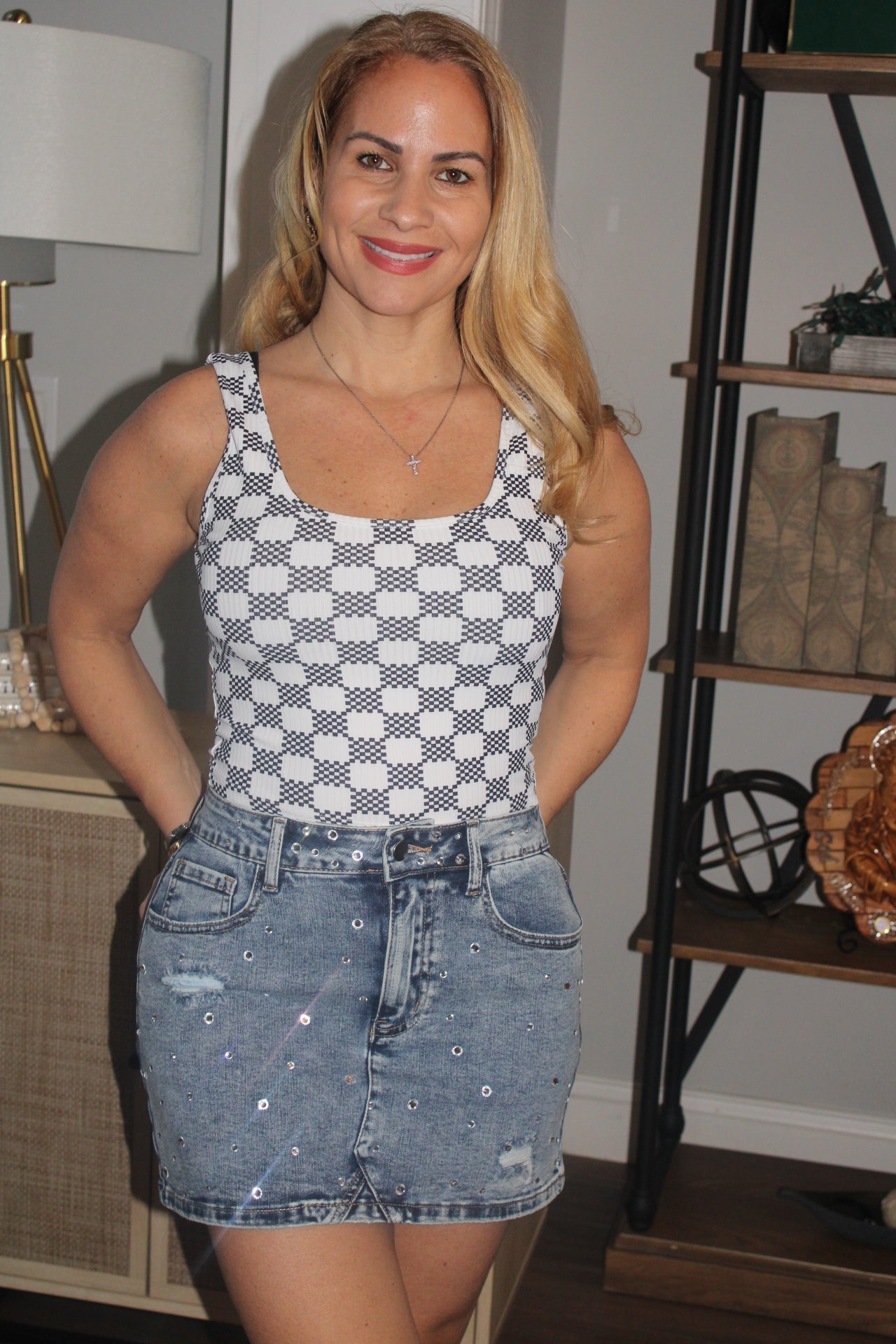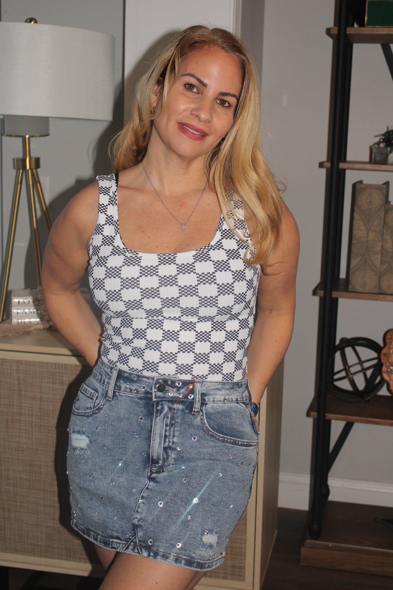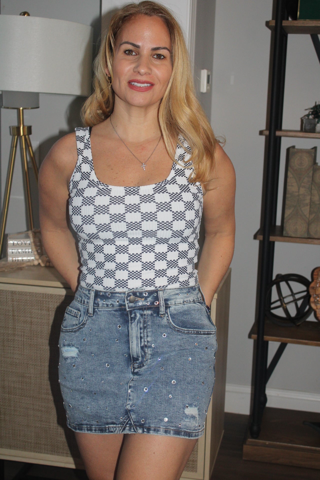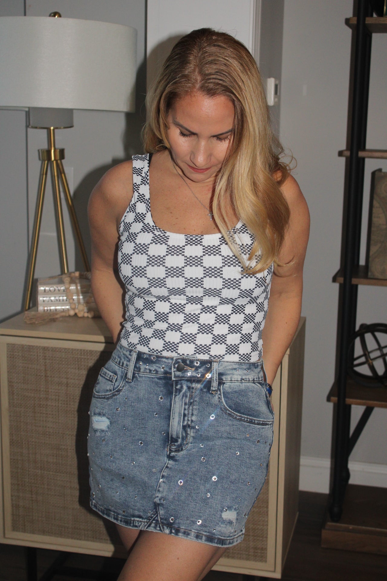 The Rhinestone Wash Skirt is a necessary addition to any wardrobe. With sizes ranging from 2 to 16, it features a high waist and elastic material for comfort. The back of the skort resembles a short, while the front is a flowy skirt. This item is currently in high demand and a popular trend.