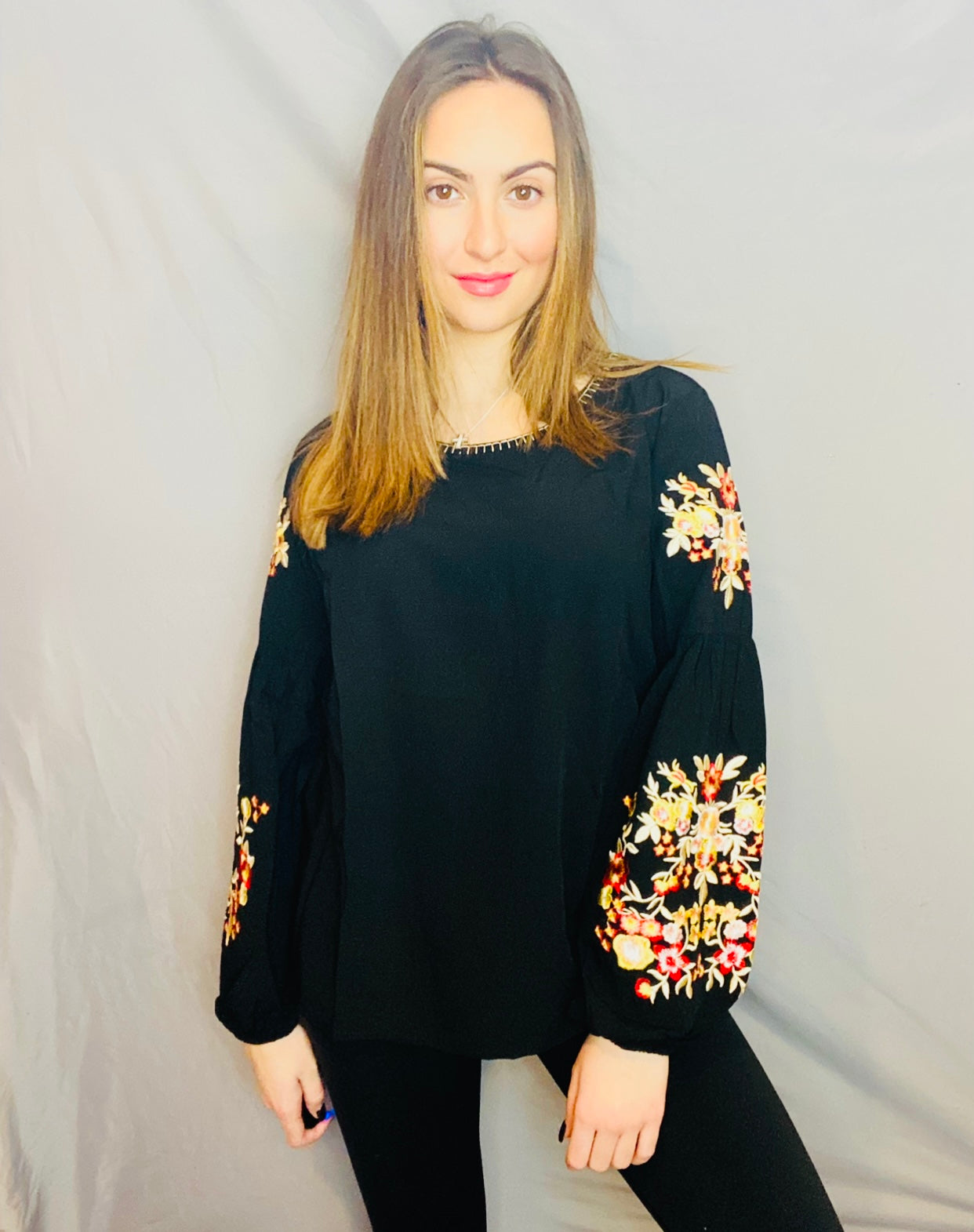 Floral Embroidery Long Sleeve Top