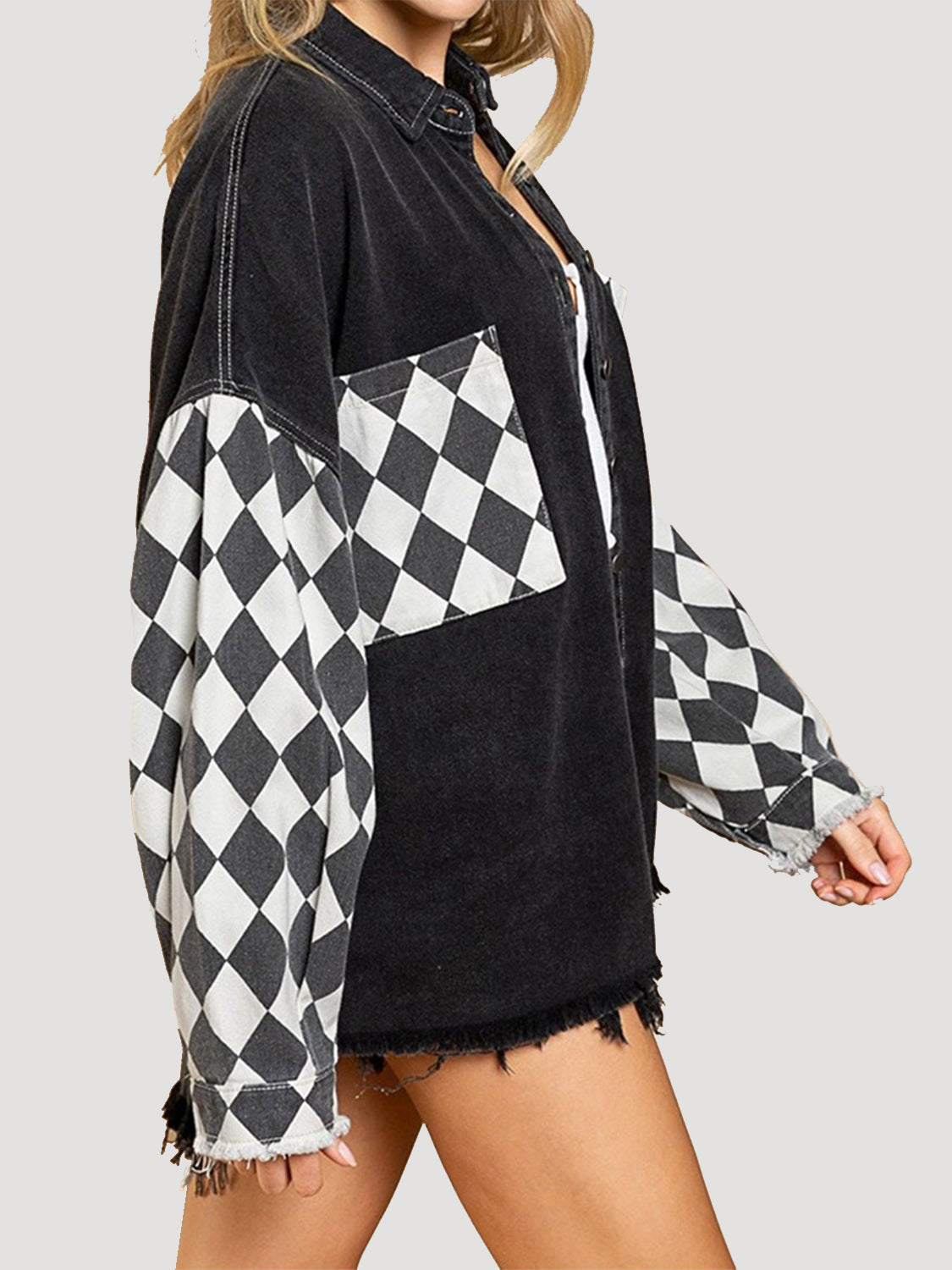 L: bust 46.8 in, front length 26.5 in, sleeve length 19.1 in