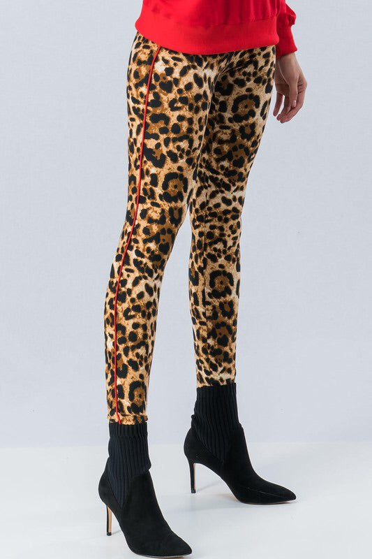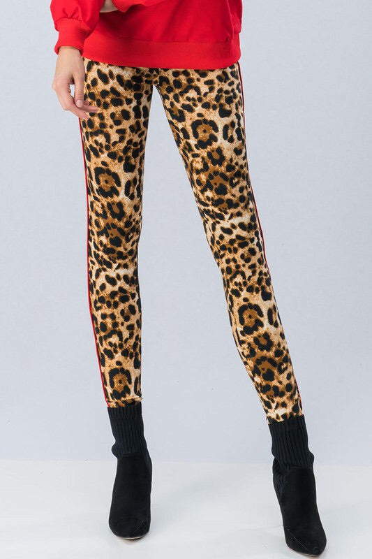 LEOPARD PRINT LEGGINGS WITH STRIPE SIDE