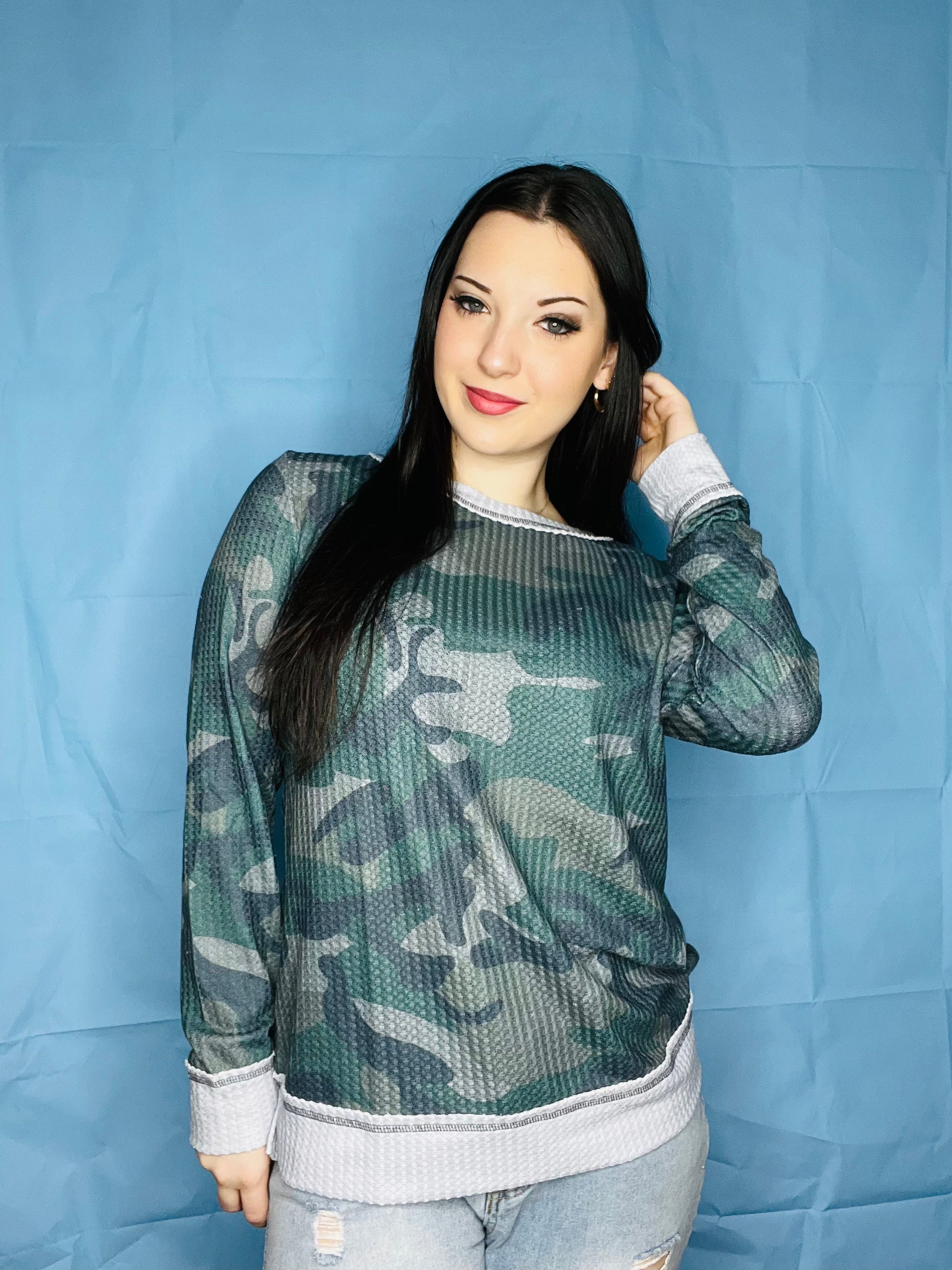 Long Sleeve Dark Colored Army Waffle Top
