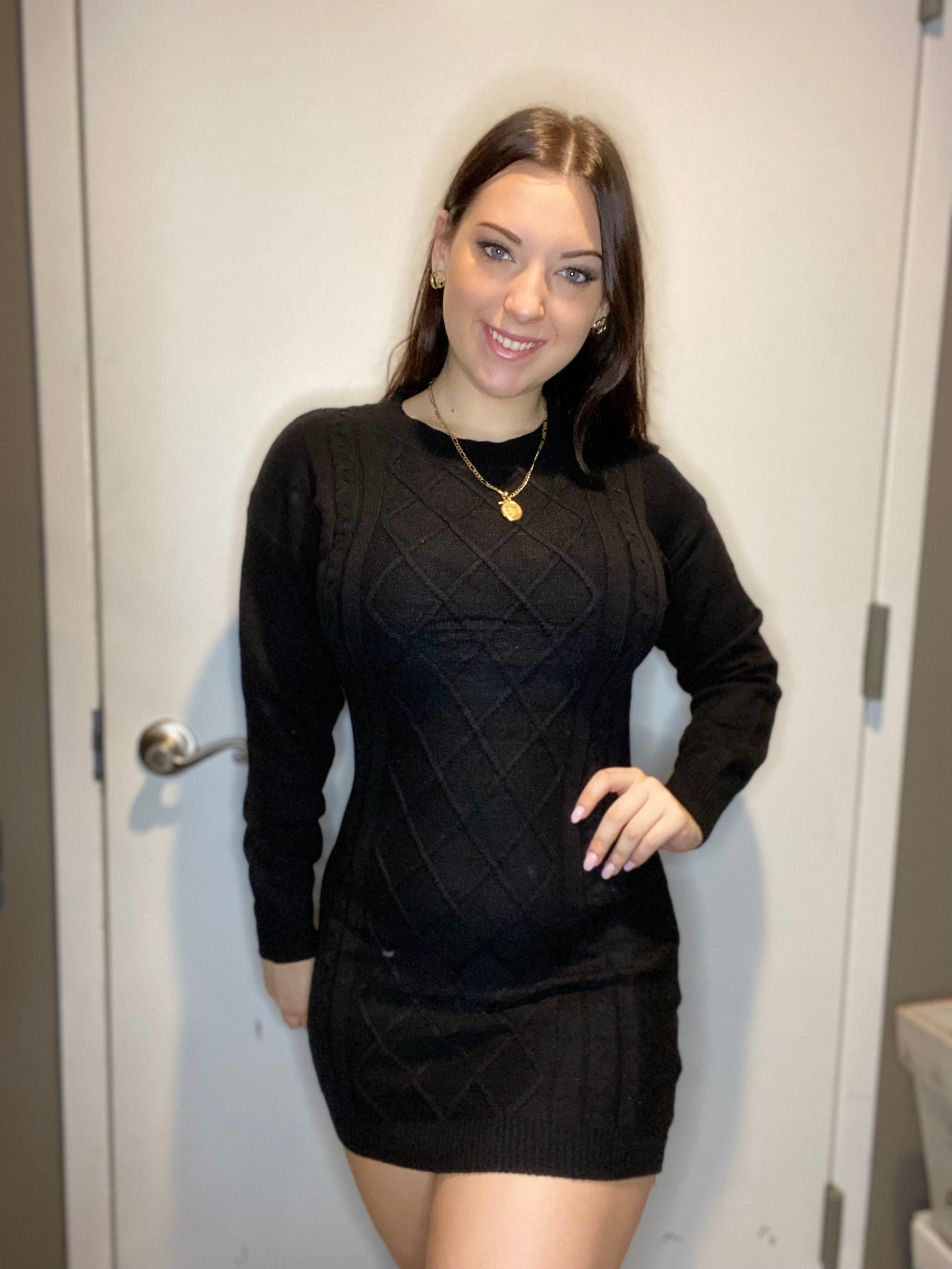 Black long sleeve sweater dress, so cozy and soft.
