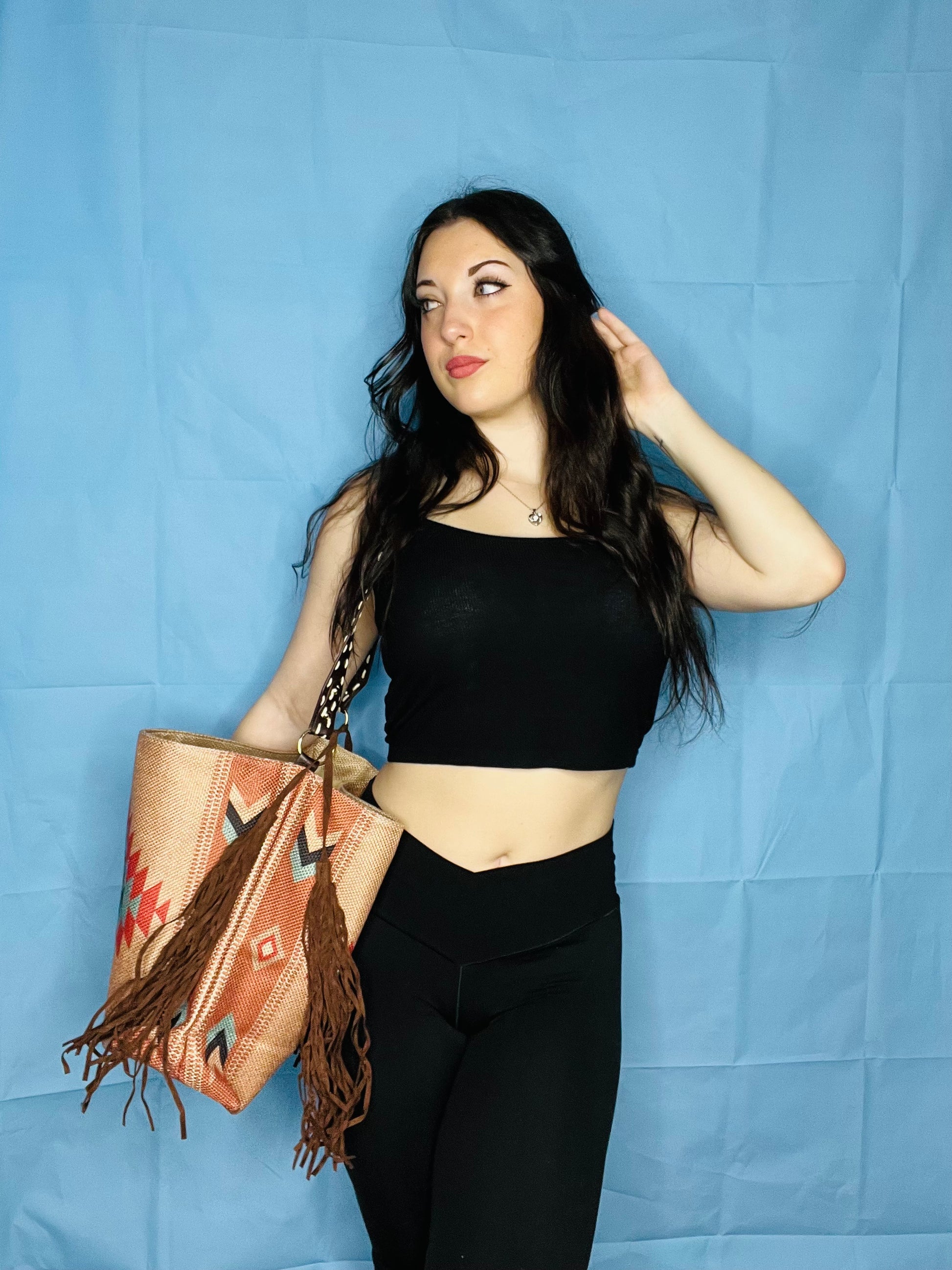 Tan - Multi-Colored Tote Bag