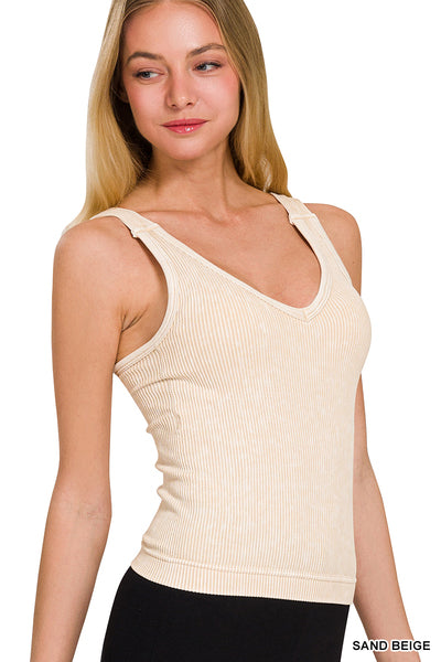 STONE WASHED RIBBED TANK TOP W BRA PAD